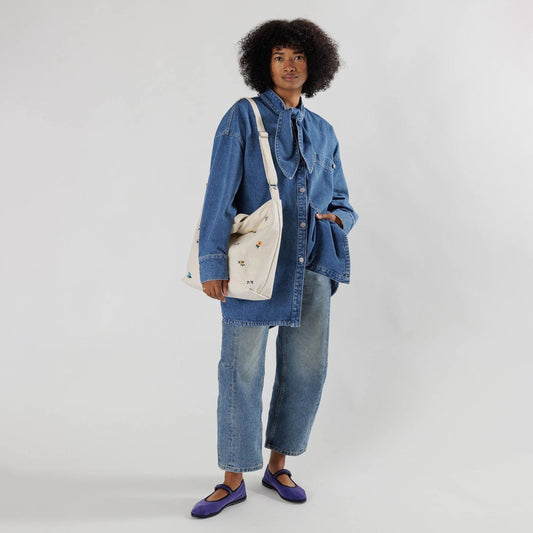 BAGGU Embroidered Ditsy Floral Horizontal Zip Duck Bag