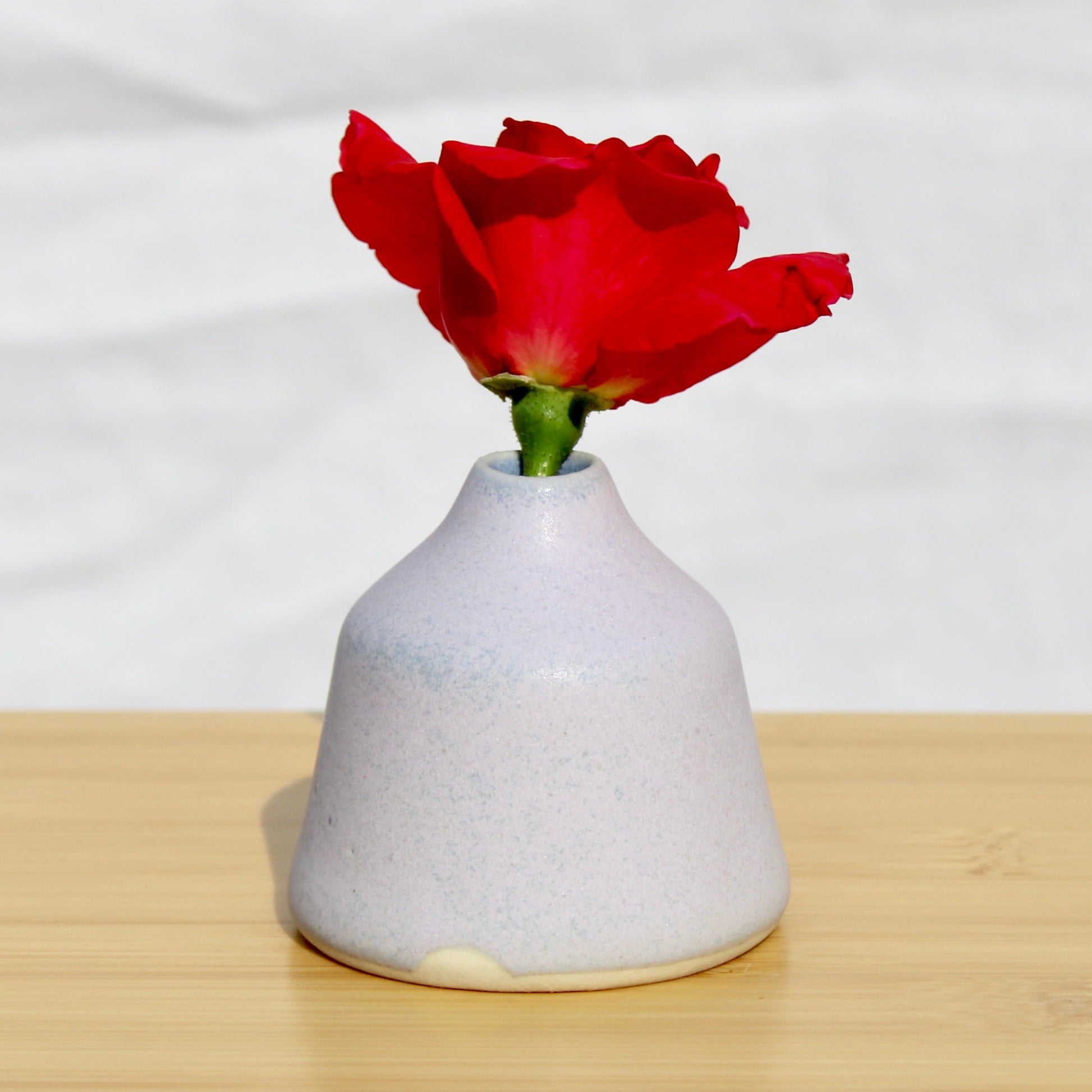 -Made of porcelain and finished in the color way Lilac, a light purple glaze with a matte finish.